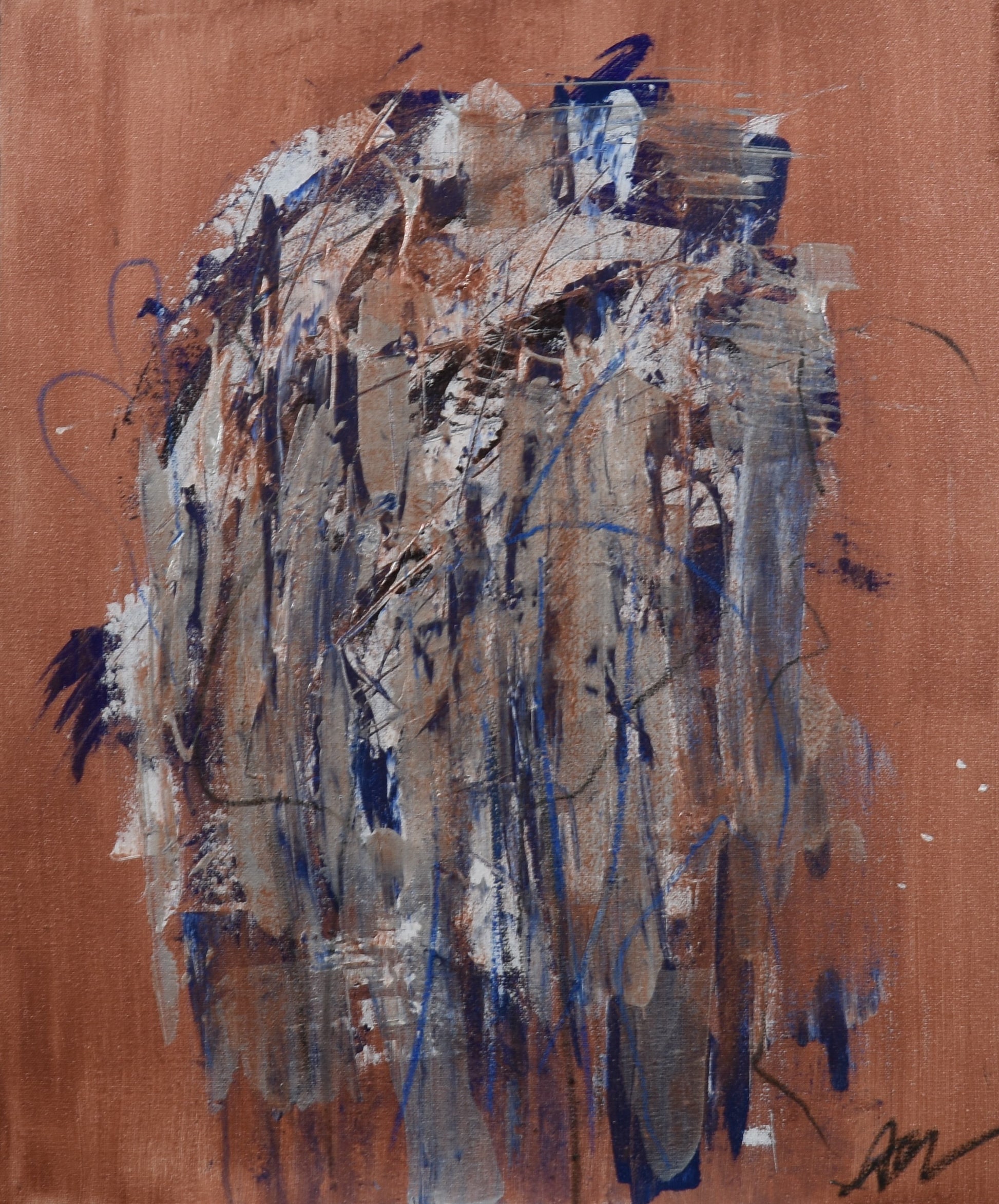 Original acrylic painting on stretched canvas 24"x20 Copper, blue, white, light blue. Abstract art, contemporary art, wall hanging art