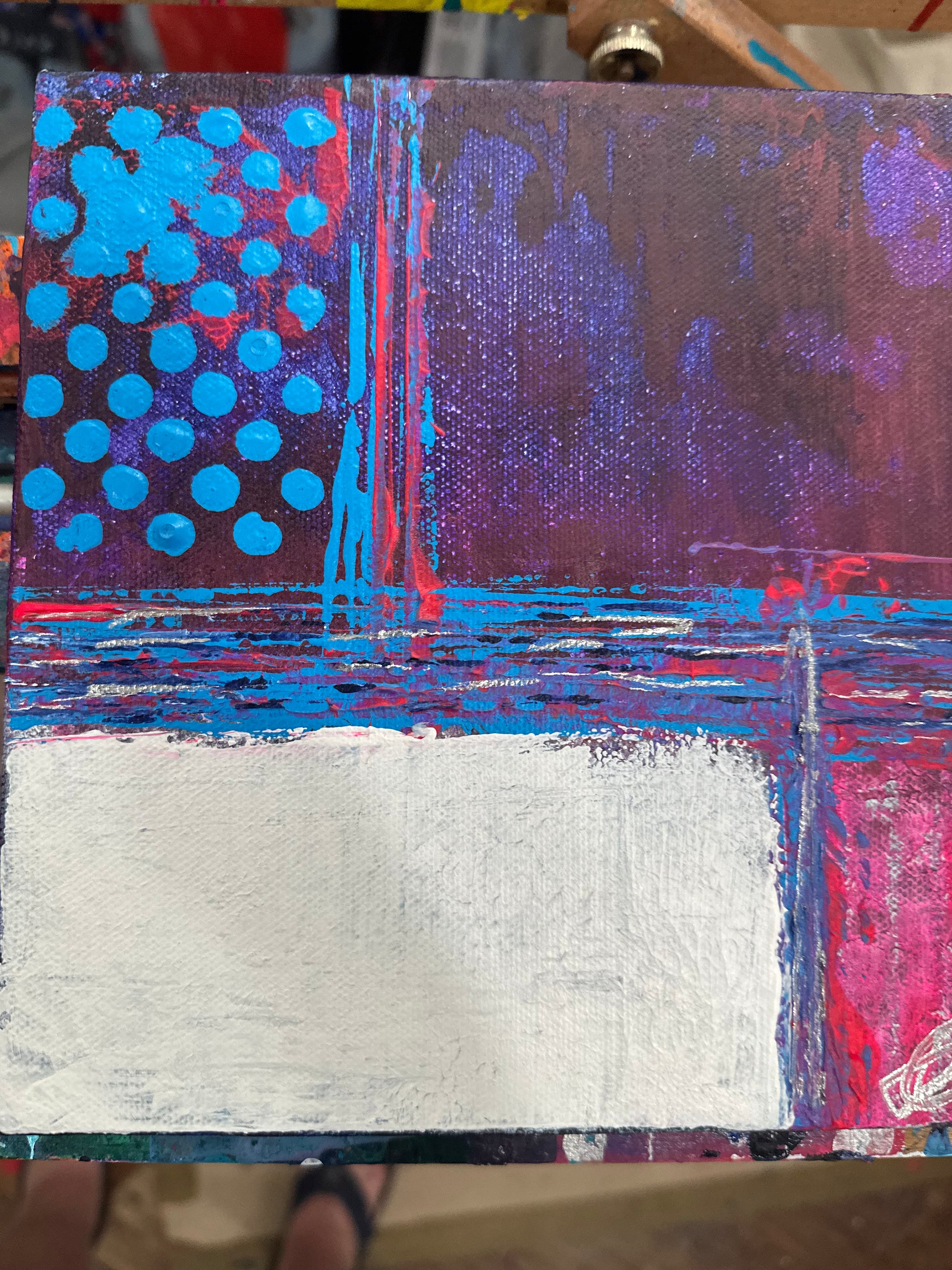 this 8"x8" is mixed acrylics on stretched canvas finished with cold wax