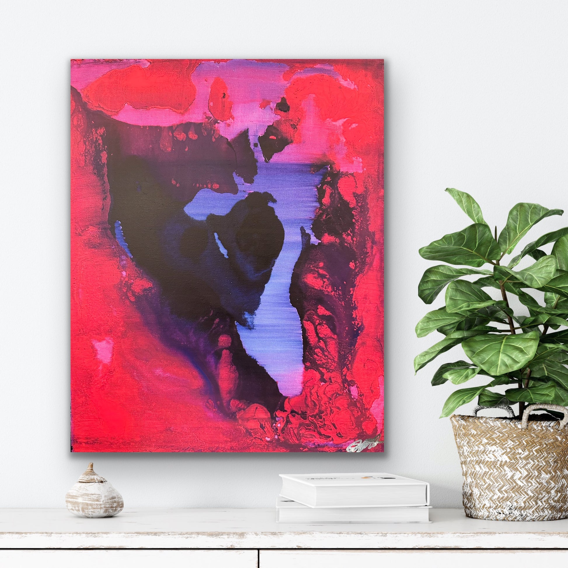 Introducing a captivating piece of acrylic on canvas abstract contemporary art. This vibrant artwork combines a harmonious blend of soft pinks, gentle blues, and a touch of purple, creating an atmosphere of tranquility and serenity.