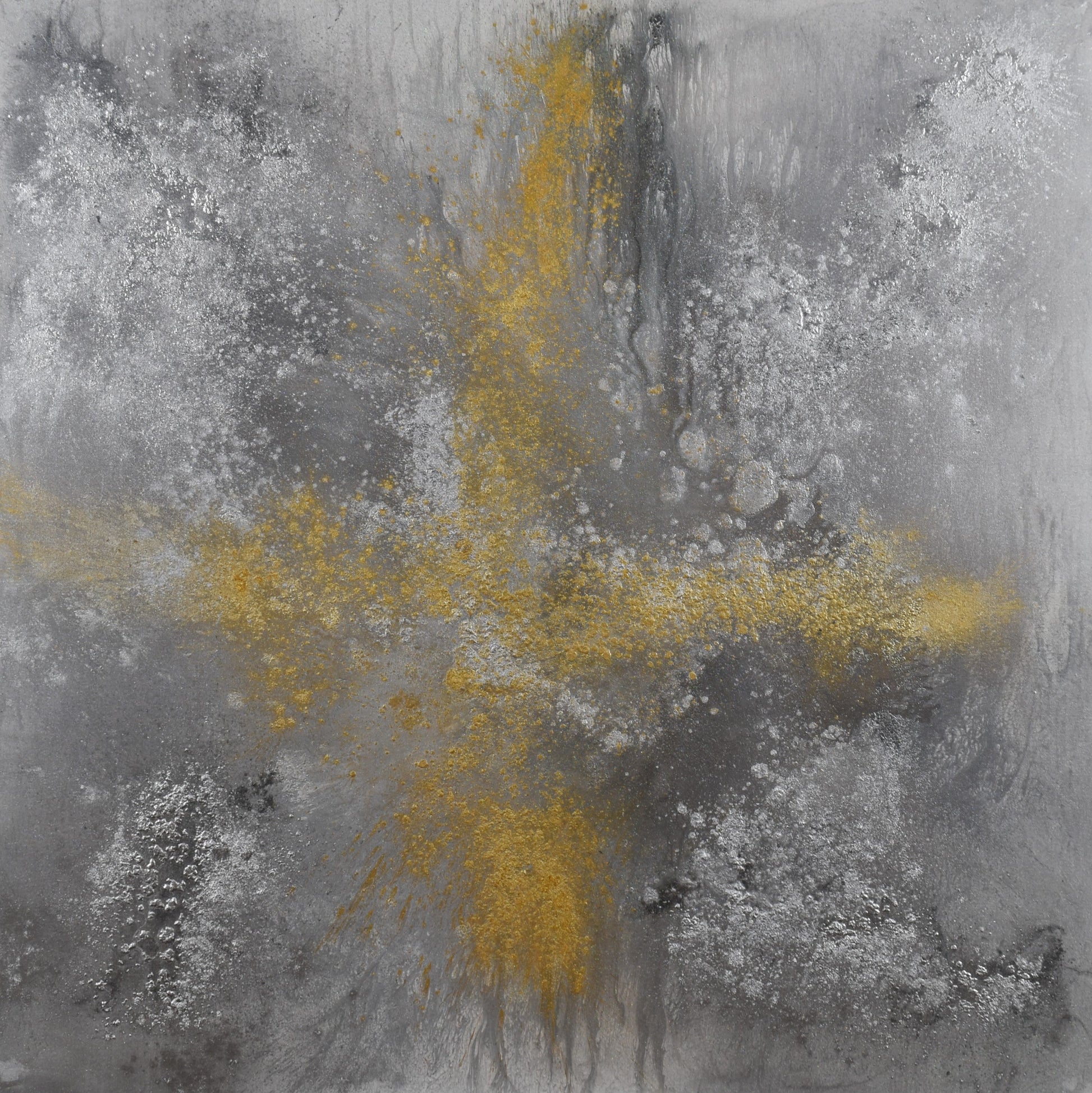 Original mixed acrylics on stretched canvas 36"x36", silver, gold, metallic. Abstract art, contemporary art