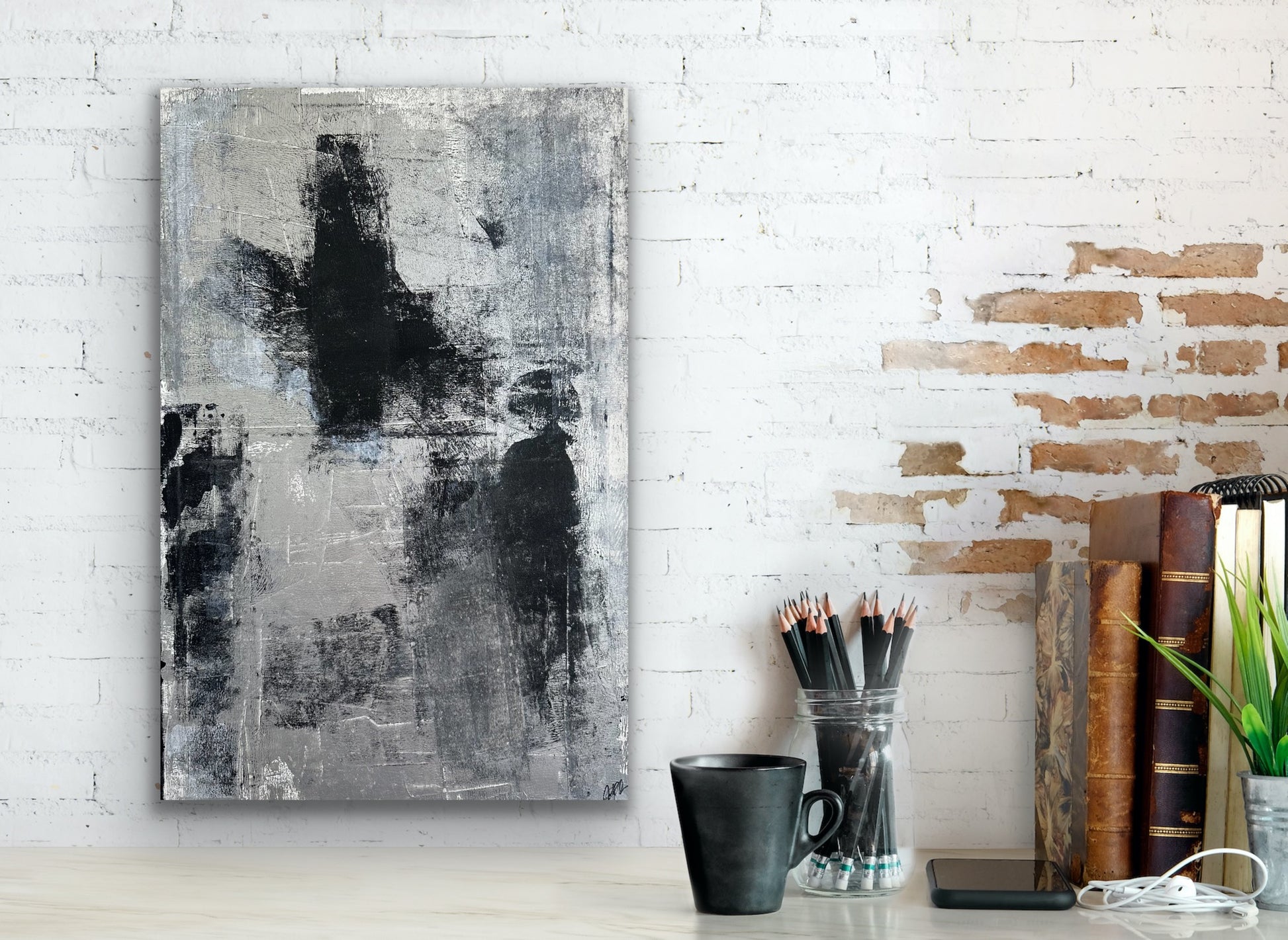 The painting "Silver Lining" is no exception. Featuring an abstract design with silver, black and white tones, this piece evokes a sense of serenity and balance. The use of silver in the painting provides a soothing and calming effect, making it perfect for any space that you want to create a peaceful and serene atmosphere.