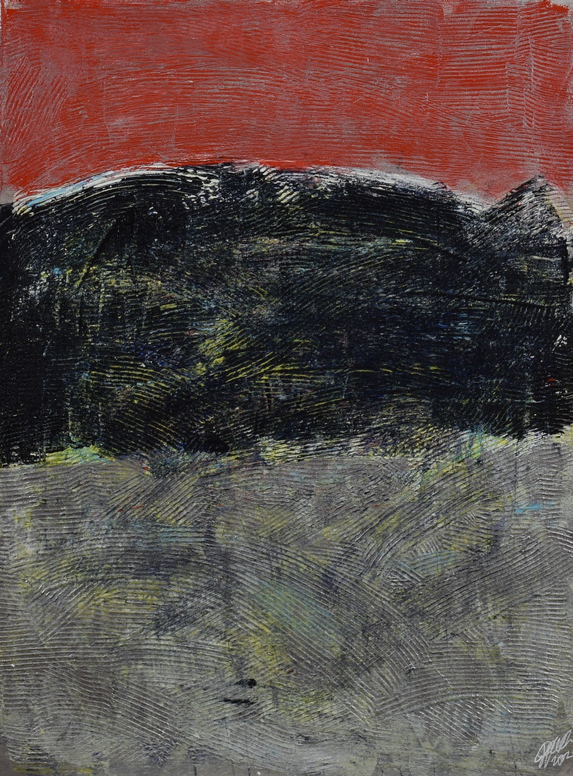 Original mixed media on stretched canvas, acrylic painting. Textured painting in the style of Mark Rothko Red, black, silvers, yellow 24'x18"
