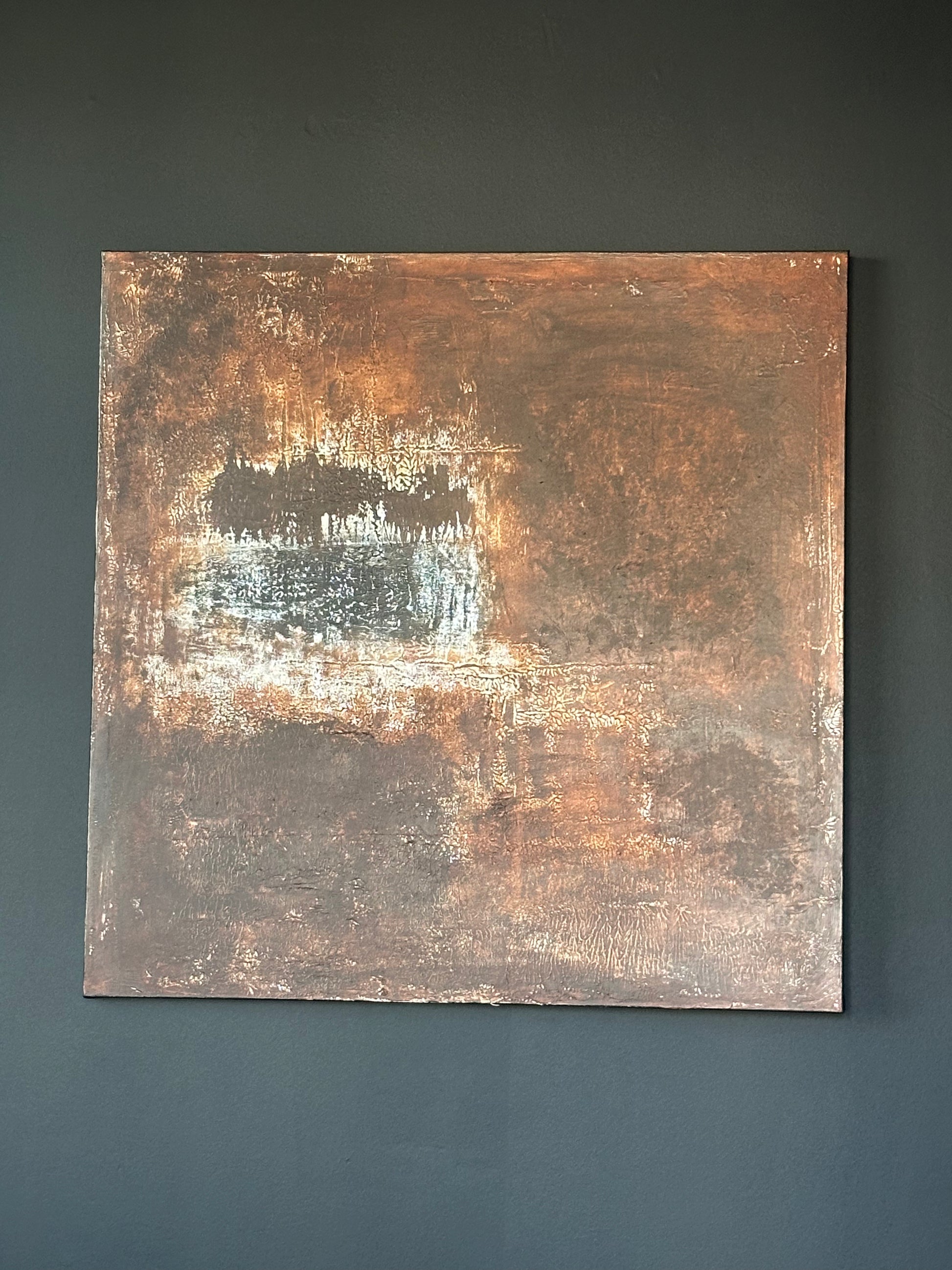 Introducing "Trailblazer" - a captivating 36x36 abstract contemporary art piece that pays homage to the enchantment of the Old West. This original painting adorns your space with a rustic charm and textured elegance reminiscent of weathered leather, evoking the spirit of the frontier.