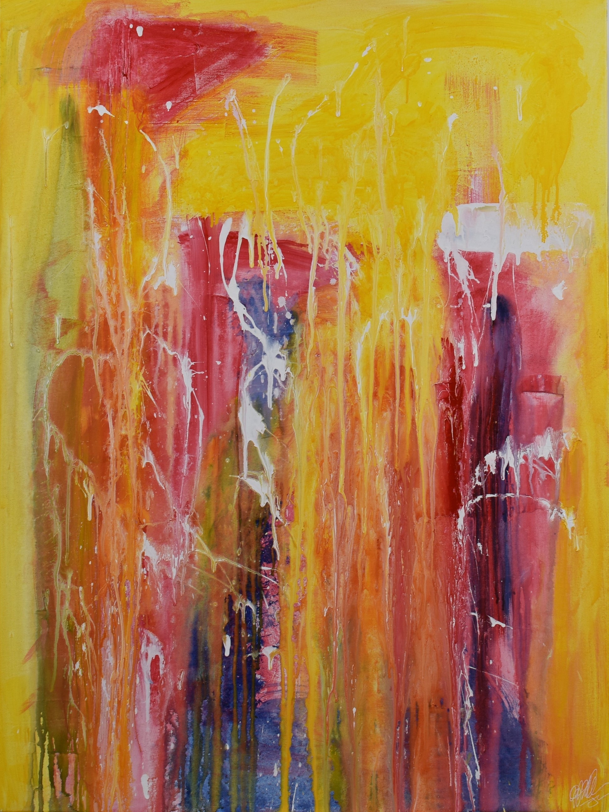 Original acrylic painting on stretched canvas. 40"x30" Inspired in part by the works of Jackson Pollock and a double rainbow over Arizona after the rains. One of a kind