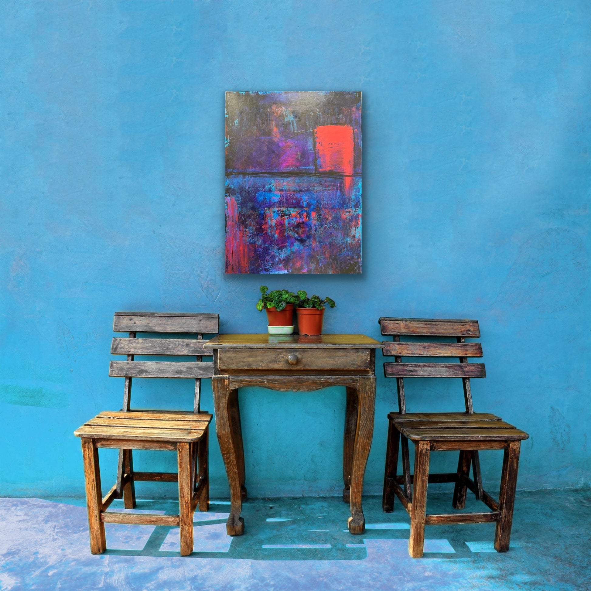 "The Awakening" invites viewers on an introspective journey, encouraging a deeper connection with the artwork. The combination of deep reds and purples creates an atmosphere of passion and emotion, while the contrasting blues and blacks add a touch of mystery and depth.