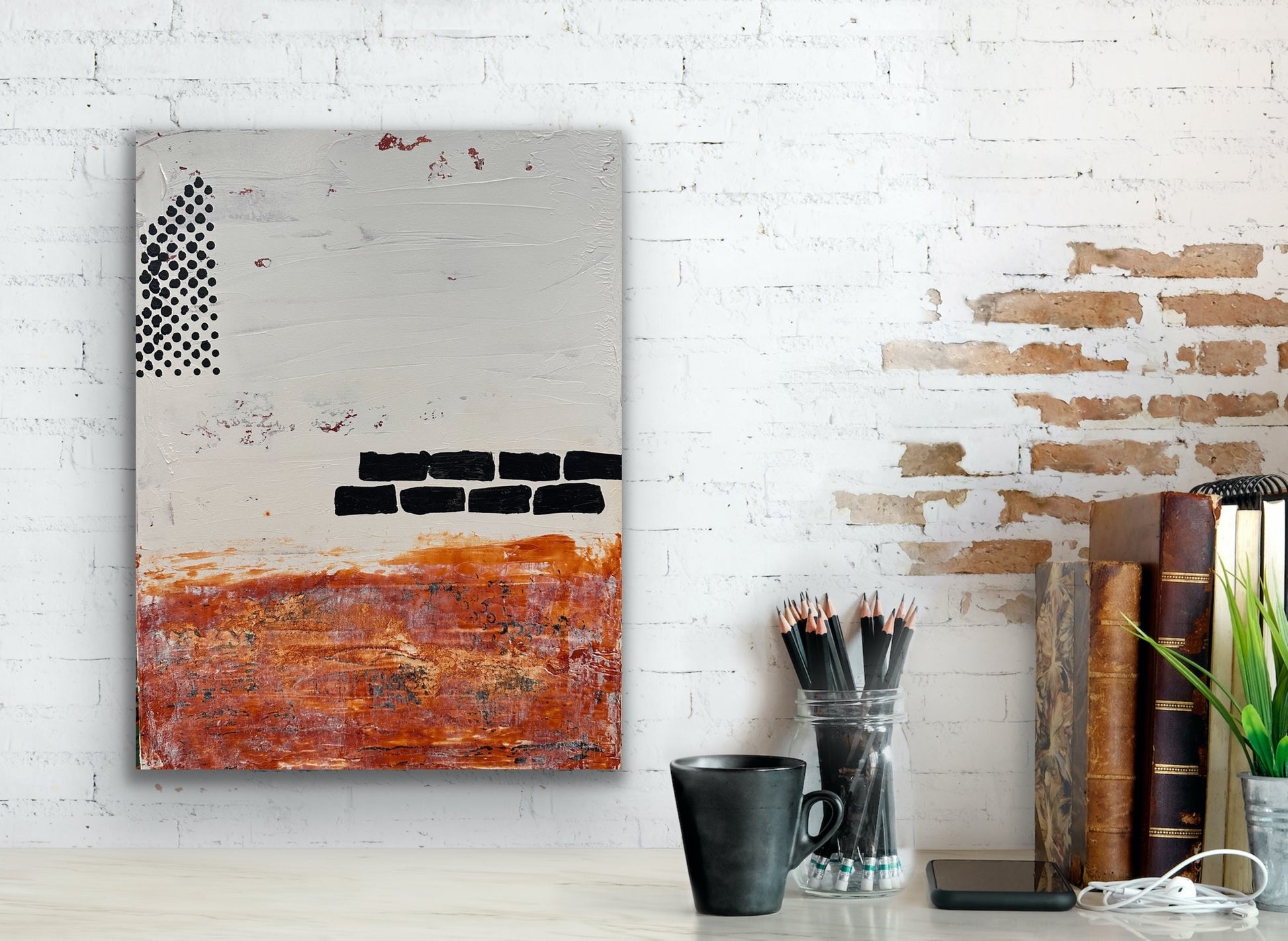 Experience the captivating allure of "Rustic Simplicity," a mesmerizing 24x18 acrylic and cold wax painting on stretched canvas. This unique artwork captures the essence of iron black and white tones, offering a timeless and rustic charm. Through the meticulous use of acrylic and cold wax techniques, the artist has skillfully crafted a textured masterpiece that resonates with both depth and simplicity. The tactile layers in the artwork create a visual journey, inviting you to explore its nuanced contours. With "Rustic Simplicity," you can bring a touch of refined elegance and understated beauty to your living space or art collection.